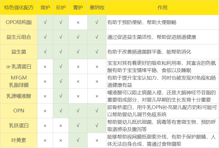 菁护和塞纳牧有机则比较相似,但菁护的优势在于DHA含量比塞纳牧有机奶粉更高,且含有有助于视力发育的叶黄素;而塞纳牧有机的优势在于有机奶源。